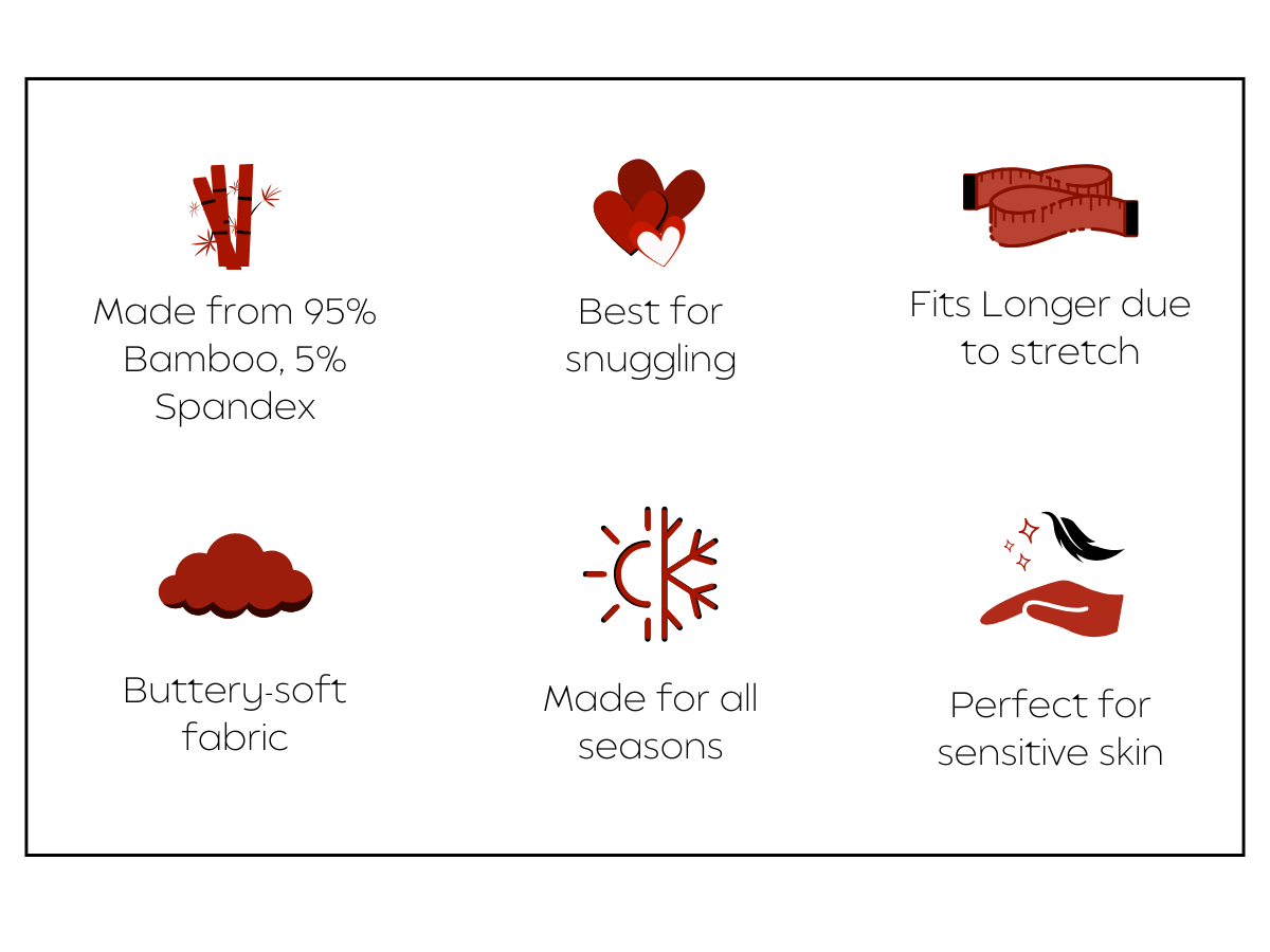• Bamboo fabric, perfect for delicate or eczema-prone skin.
